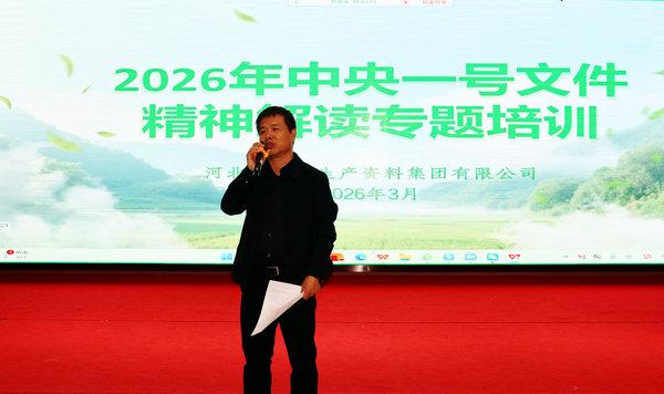 本網訊 春潮涌動處,奮進正當時。為深入學習2026年“中央一號文件”精神,全面、精準、深入理解文件的核心要義,把握農資行業的政策方向,3月27日下午,集團公司組織全體員工開展2026年“中央一號文件”精神解讀專題培訓。集團公司黨委副書記、總經理楊瑞生出席會議并講話。業務管理部經理王獻輝結合公司實際就農資行業如何參與高標準農田建設進行了知識分享。