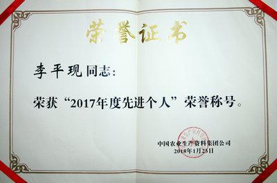會議對中農集團2017年度4家先進集體和20名先進個人進行了表彰。我公司黨委書記、總經理李平現榮獲“2017年度先進個人”稱號。