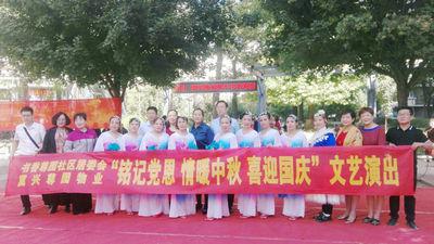 本網訊    為傳播傳統文化,促進和諧家園建設,9月22日上午,冀興尊園物業聯合書香尊園居委會和暮享國際老年大學共同在冀興尊園南門舉辦了“銘記黨恩 情暖中秋 喜迎國慶”文藝演出。參加演出的中老年朋友們,用飽滿的熱情,悠美的舞蹈表達了慶祝祖國69歲生日的美好愿望。歡歌笑語連成片,小區居民共參與,此次演出不但豐富了社區居民業余文化生活,更加深了對偉大祖國的熱愛之情,受到了良好贊譽。