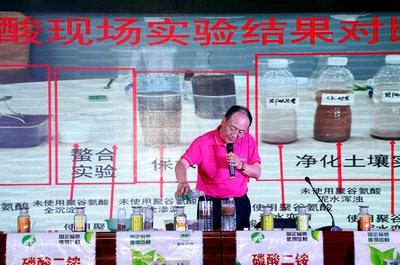 王震詳細介紹了聚谷氨酸二銨產品的研發過程、適應作物品種、功能特點、使用方法及使用效果。聚谷氨酸二銨具有超強親水性與保水能力,能夠促進磷肥與中微量元素吸收,平衡土壤酸堿值,螯合土壤中有毒重金屬,增強作物抗病及抗逆境能力,達到促吸收、保水分、調酸堿、保豐收的效果。通過聚谷氨酸新型二銨使用效果對比和各項數據測試表明,肥料作用明顯,達到了為農民降低成本、增產增收的目的。現場實驗更是讓與會者直觀感受到聚谷氨酸二銨的強大功效,幫助大家對產品有了更清楚的了解。