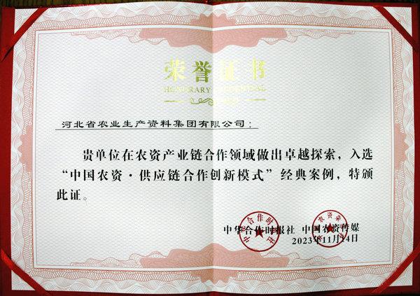 本網訊    近日,在中華合作時報、中國農資流通協會、中國磷復肥工業協會與中國農資傳媒共同主辦的“中國農資·2023 產業鏈合作創新大會暨2022-2023年度服務商大會”上,集團公司成功上榜并入選“中國農資·供應鏈合作創新模式”經典案例。