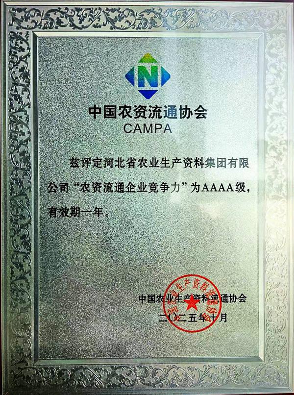 本網訊 11月4日,中國農業生產資料流通協會在江蘇省南京市召開“2025年度中國農資經銷商年會”。會上發布了“2024/2025中國農資流通行業發展報告”,公布了2025年度中國農資流通企業信用等級評價結果、2025年度農資流通企業競爭力評價及農資行業知名品牌認定結果。集團公司被評為“AAA級信用企業”,同時榮獲“2025年度農資流通企業競爭力AAAA級”,“冀農”品牌被評為‘“AAA”級農資行業知名品牌(產品類)。